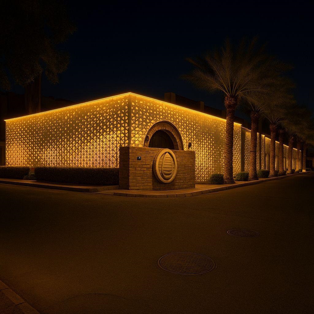 كيف تدمج الإضاءة الحديثة مع ديكورات الـ GRC الخارجية؟: أفكار لتسليط الضوء على الزخارف ليلاً.